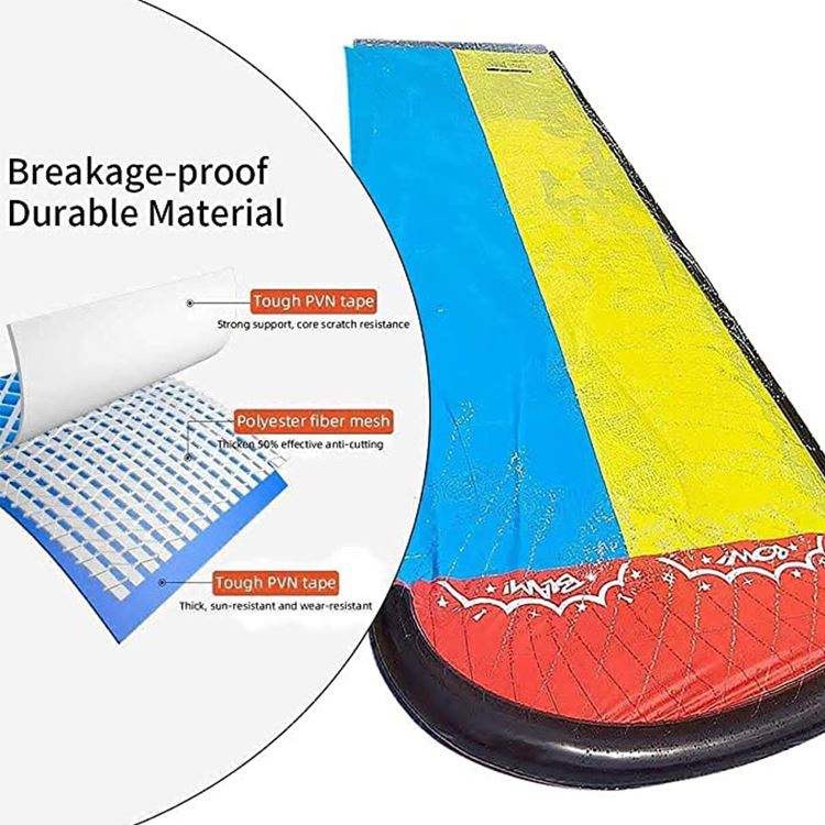 Kiváló minőségű 6P anyagból készült, ez a vízi csúszda hosszú élettartamra lett tervezve. Könnyű, egyszerűen telepíthető, és játék után gyorsan összehajtható a problémamentes tárolás érdekében.