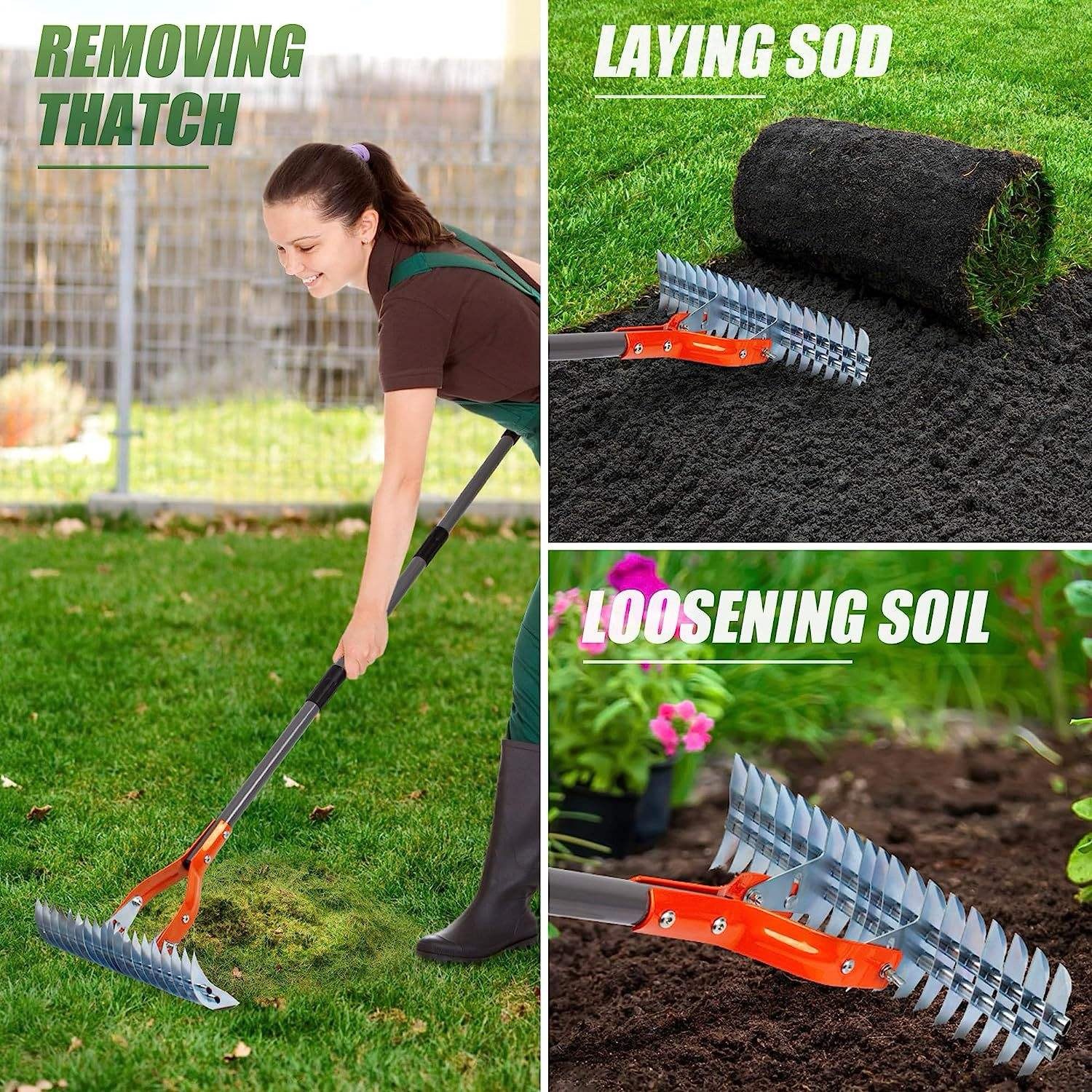 Ez a nagy teljesítményű filceltávolító gereblye segít egészségesebben tartani a gyepet az elhalt fű, levelek és szennyeződések eltávolításával, valamint a talaj szellőztetésének javításával. Lehetővé teszi, hogy a napfény, a víz és a tápanyagok könnyebben eljussanak a gyökerekhez, így a gyep rendezett, tiszta és kiváló állapotban marad.