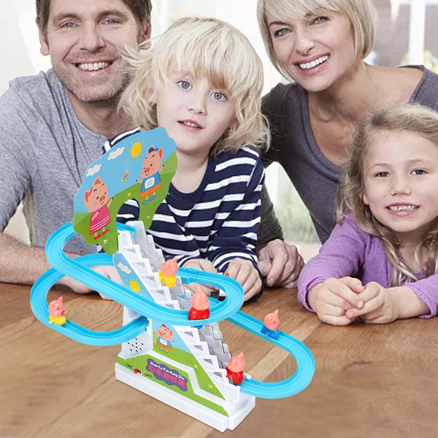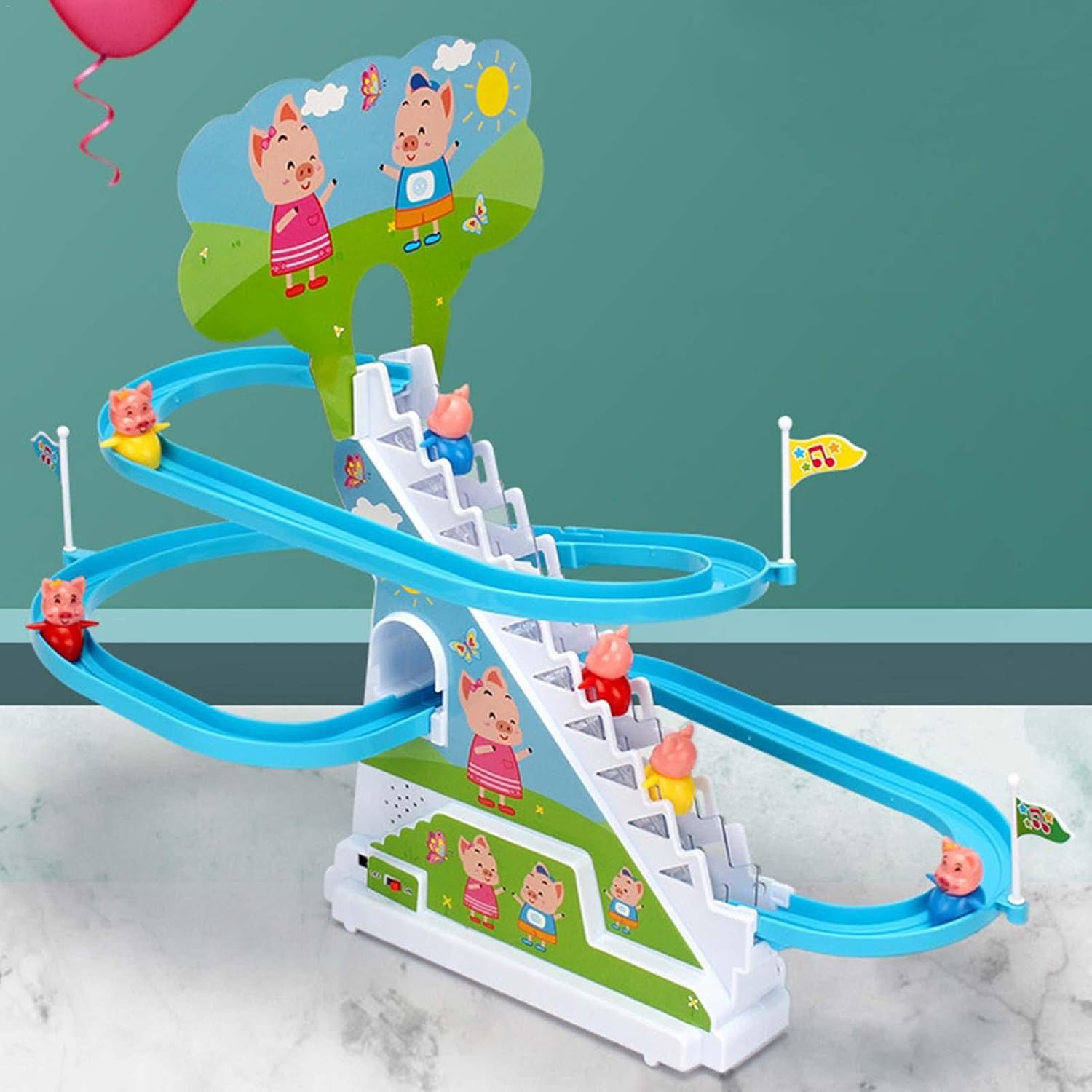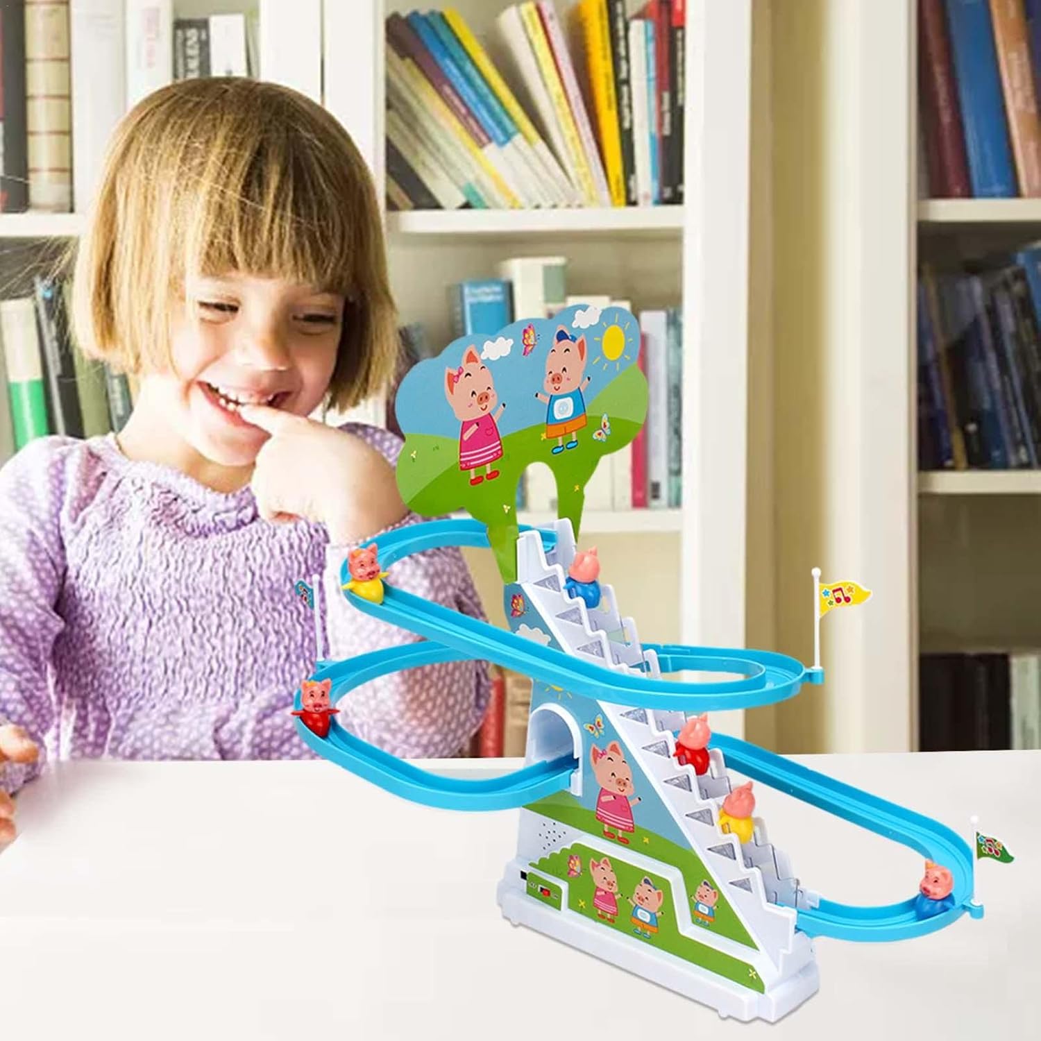 A zenélő tobogan egy bájos játék, amely órákon át lefoglalja a gyerekeket! Miközben a kis figurák felkapaszkodnak a lépcsőn, majd vidám dallamok kíséretében lecsúsznak, a kicsik élvezettel figyelhetik mozgásukat és a csillogó fényeket. Ez a hang, a mozgás és a színek tökéletes kombinációja, mely ösztönzi a képzeletet, és örömet visz a mindennapokba.