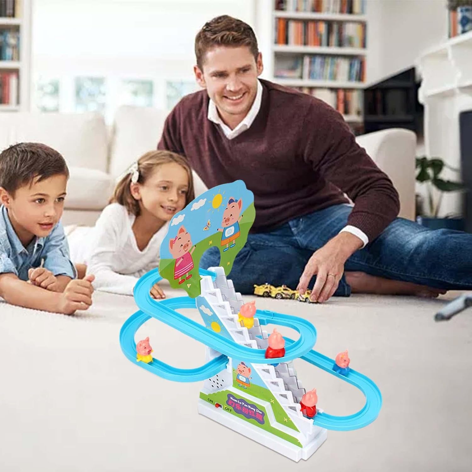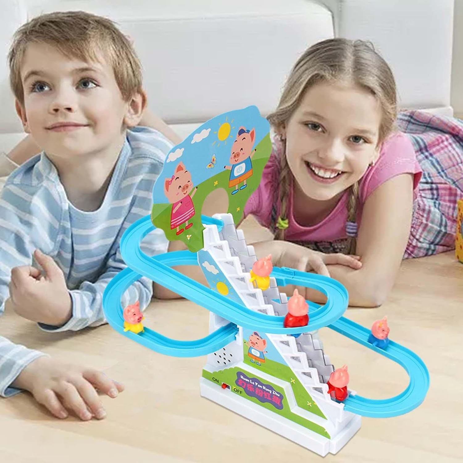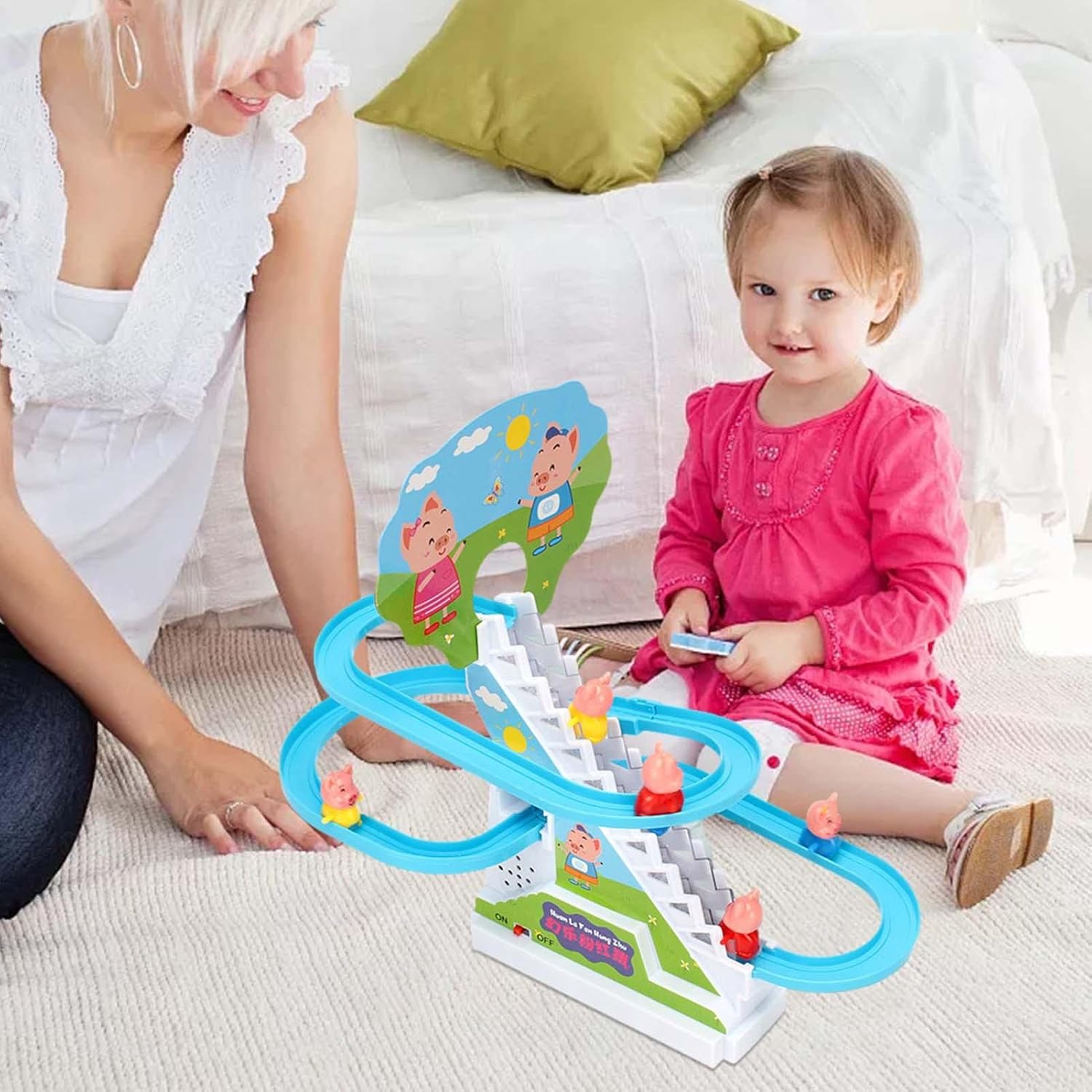 A zenélő tobogan egy bájos játék, amely órákon át lefoglalja a gyerekeket! Miközben a kis figurák felkapaszkodnak a lépcsőn, majd vidám dallamok kíséretében lecsúsznak, a kicsik élvezettel figyelhetik mozgásukat és a csillogó fényeket. Ez a hang, a mozgás és a színek tökéletes kombinációja, mely ösztönzi a képzeletet, és örömet visz a mindennapokba.