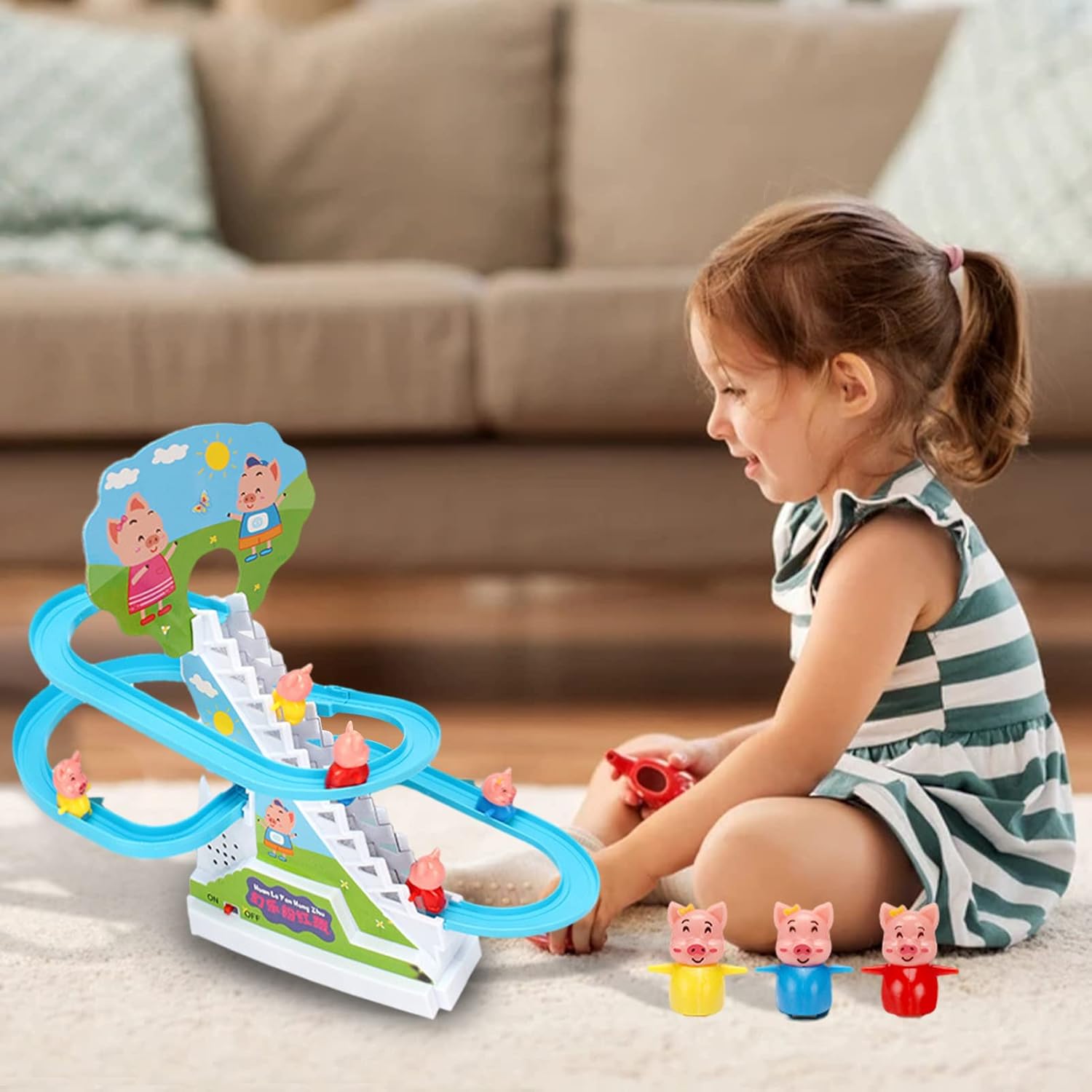Az egyik legjobb tulajdonsága ennek a játéknak az izgalmas kialakítása. A gyerekek összeállíthatják a pályát, elhelyezhetik kedvenc figuráikat, és saját szórakoztató kalandokat teremthetnek. A figurák sima mozgása és a zenei effektek minden lecsúszást izgalmassá és különlegessé tesznek, miközben a koordinációt és a kreativitást is fejlesztik a játék során.